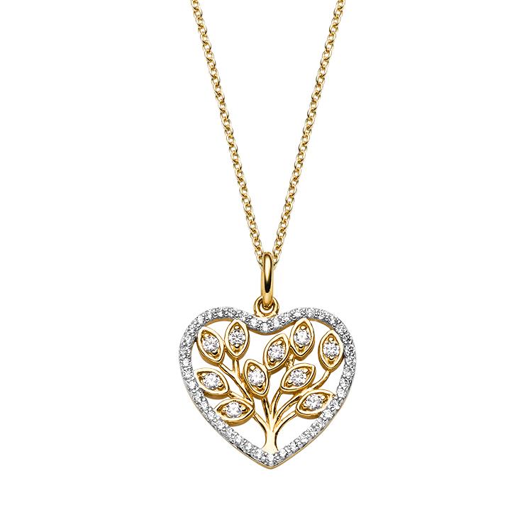 Anhänger mit Kette ‚Herz‘ mit 52 Zirkonia