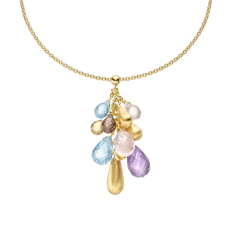 Anhänger mit Kette mit 1 Amethyst & 2 Blautopase & 1 Citrin & 2 Rosaquarze & 1 R