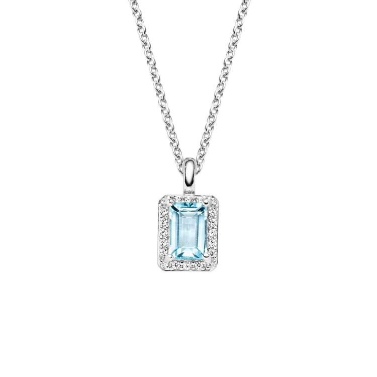 Anhänger mit Kette mit 1 Blautopas (beh.) & 20 Zirkonia