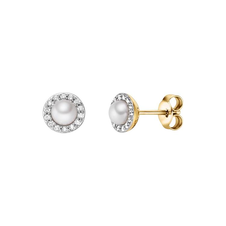 Ohrschmuck mit 2 Süsswasserperlen & 24 Zirkonia